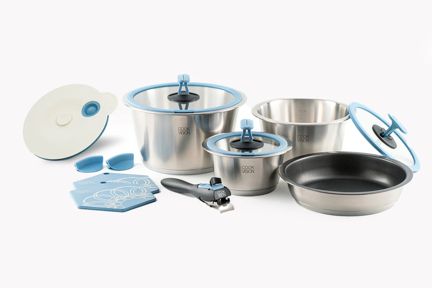 DAS KOCHSYSTEM AUS DER SERIE nesto IST DAS PERFEKTE REISE-ACCESSOIRE. Platzsparend: Durch die abnehmbaren Griffe und das kompakte Design nehmen die Töpfe und Pfannen kaum Platz weg und lassen sich platzsparend verstauen. Robust und langlebig: Das hochwertige Edelstahlmaterial ist robust, langlebig und widerstandsfähig gegenüber Kratzern und Stößen. Einfache Reinigung: Die glatte Oberfläche ermöglicht eine schnelle und unkomplizierte Reinigung, auch unterwegs. Vielseitig einsetzbar: Die Töpfe und Pfannen sind nicht nur für den Einsatz auf Herd und Ofen geeignet, sondern auch für Gasgrills . Schickes Design: Das moderne und elegante Design aus hochwertigem Edelstahl ist in jedem Wohnmobil oder Wohnwagen ein cookvision eycatcher und macht das Kochen zu einem besonderen Erlebnis. Bei uns erhältlich: Cookvision-Edelstahl-Kochgeschirr !